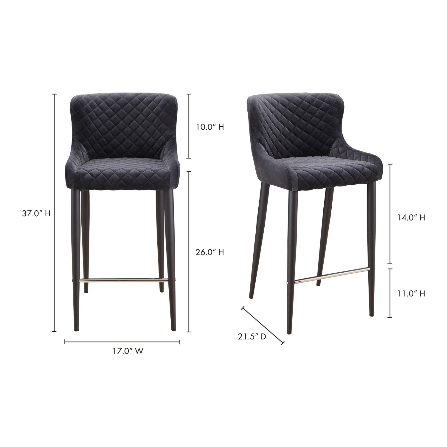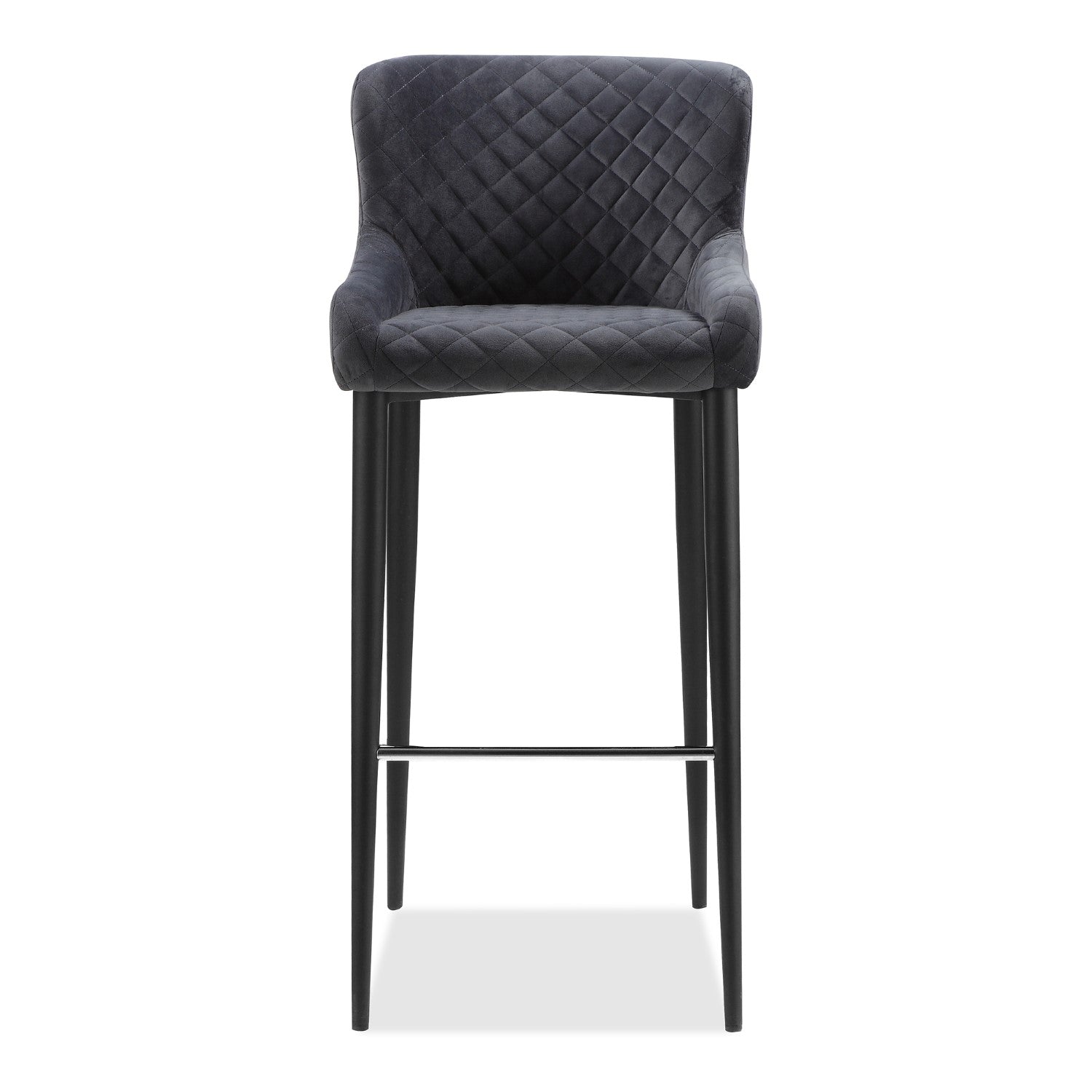 Etta features a wide, comfortably padded seat with stunning diamond-tufted velvet upholstery. A wide, comfortable seat and diamond tufted grey upholstery make the Etta the ideal counter stool for your dining space.