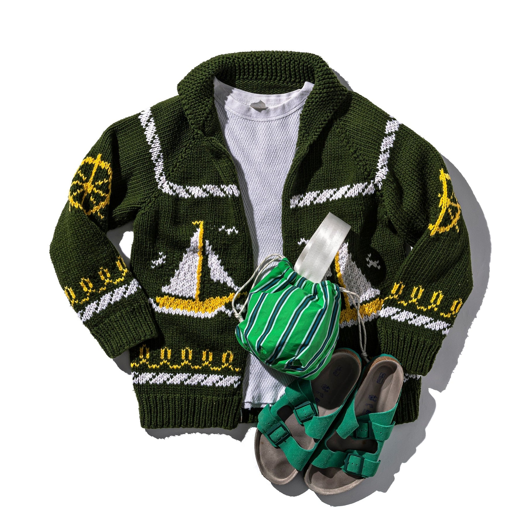 media image of Shirt Fabric Drawstring Bag Green Stripe 7 157