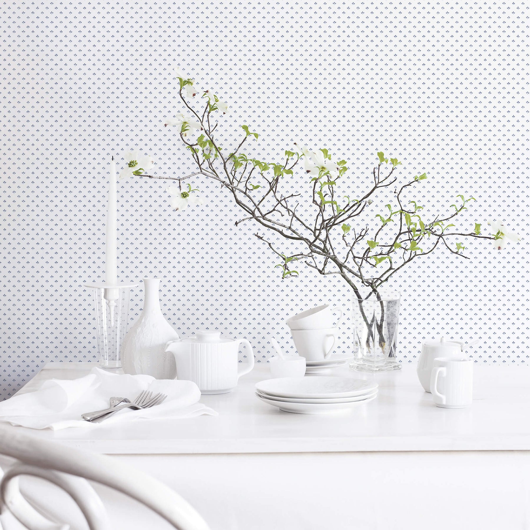 Tri Leaf Navy/Blue Wallpaper from the Just Kitchens Collection